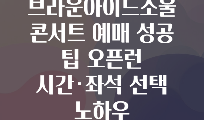 #브라운아이드소울 #콘서트예매 #티켓팅성공 #오픈런전략 #좌석선택노하우 #라이브공연 #음향최적화 #멜론티켓 #팬클럽선예매 #문화체육관광부 #공연예술