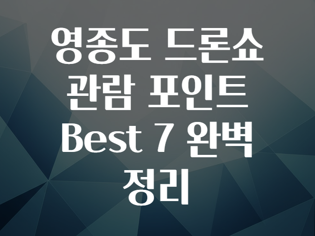 “어디서 보아야 가장 멋지게 보일까?”, “주변 편의 시설은?”, “시간대별로 좋은 관람 포인트는 어디인가?” 궁금해하는 분들을 위해 영종도 드론쇼 관람 포인트 Best 7을 완벽하게 정리해 봤습니다.