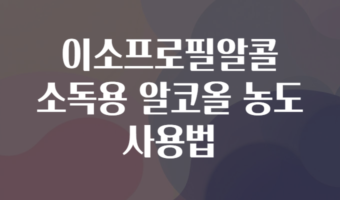 ✅ 이소프로필알콜 농도별 소독력과 용도 비교