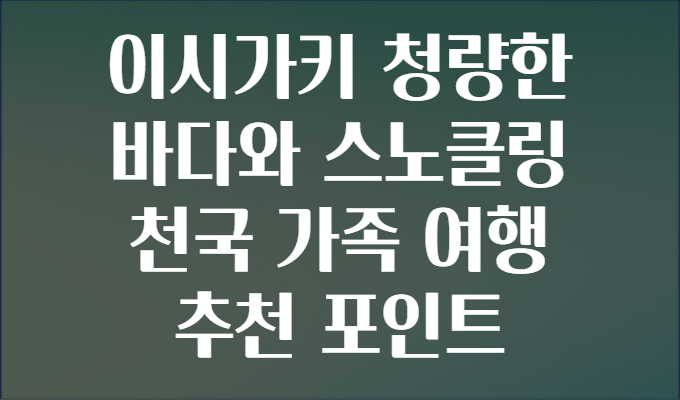 오늘은 일본 오키나와 현에 속한 이시가키섬(石垣島)을 소개해드릴게요. 이 곳은 투명한 청량한 바다와 풍부한 해양 생태계 덕분에 ‘스노클링 천국’이라 불립니다. 🌊🐟 가족 모두가 잊지 못할 추억을 만들기에 안성맞춤인 여행지인데요, 이번 글에서는 이시가키 여행의 핵심 포인트를 꼼꼼하게 정리해 드릴게요! ✈️👨👩👧👦